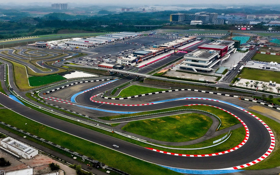 位于简阳市简州新城石盘镇花红村,距成都市中心直线距离约39.5公里,一期西赛道设计占地面积约1000亩,按照国际汽车运动联合会最新技术标准设计的国际汽联二级赛道。西赛道全长3263.728米,宽14米-16米,共计19个弯道,其中设12个左弯、7个右弯;设4个上坡段、3个下坡段,最大上坡纵坡坡度5.141%,最大下坡纵坡坡度4.968%;最大直线段长589米。采用全球领先的Mylaps X2智能化计时计分系统和FIA认证的安全警示灯板系统,可举办各类型房车、方程式、摩托车场地赛,还可举办公路自行车、马拉松等综合体育赛事。后场面积约42000平米,可举办各类国家级、地区性汽车飘移赛事,同时也是各类商业活动、演唱会的优选场地。